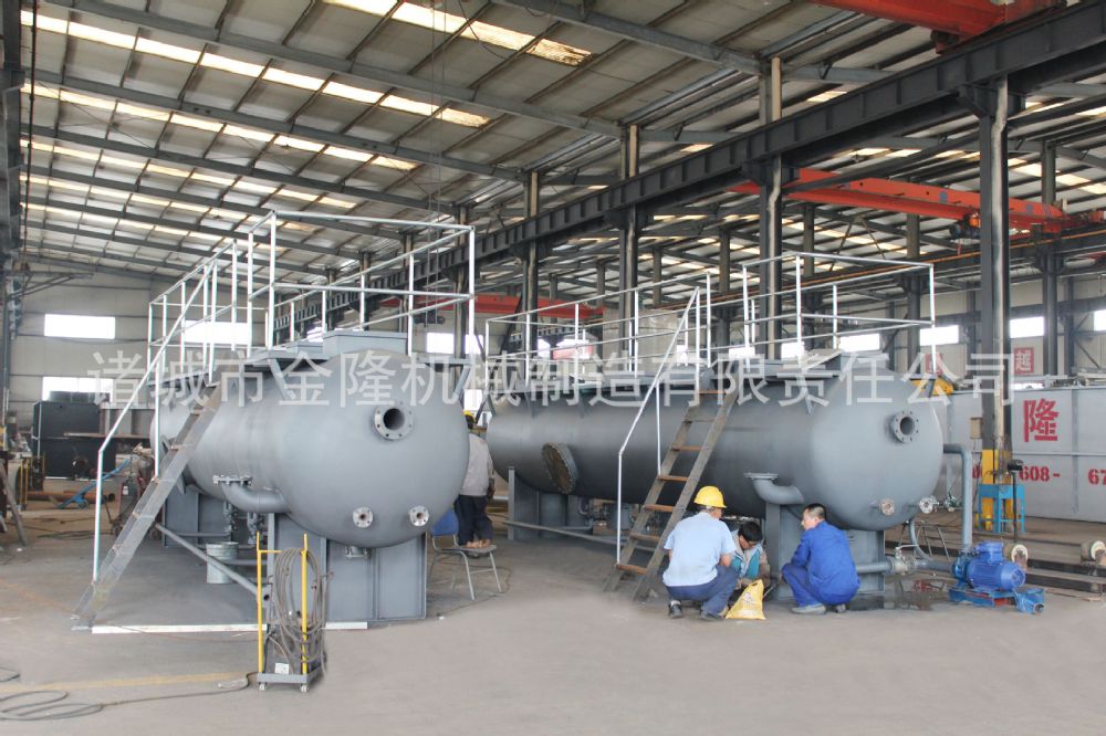 射流氣浮凈化機(jī)(除焦油器)的工作是通過(guò)循環(huán)水泵(射流泵)利用射流方式將空氣吸收到溶氣水系統(tǒng)中,形成氣水混合狀態(tài)液-溶氣水,氣水混合液經(jīng)加壓溶氣罐再分別進(jìn)入主罐體中多梯級(jí)處理的各個(gè)反應(yīng)腔中,由特別的均衡釋放器釋放溶氣水,溶氣水中氣泡粒徑細(xì)小(10-50μm),使其粘附于絮體,造成整體比重小于液體的狀況,根據(jù)浮力原理使絮體浮出水面,從而分離出水中污染物。污染物在設(shè)備的不同位置被收集后集中排放到地下收集槽或機(jī)械化澄清槽,浮選凈化后的水可重復(fù)使用。氣浮凈化機(jī)具有先進(jìn)的射流式溶氣系統(tǒng)和均衡釋放系統(tǒng),,實(shí)現(xiàn)了多級(jí)串聯(lián)式浮選,提高了油或懸浮物的去除率。